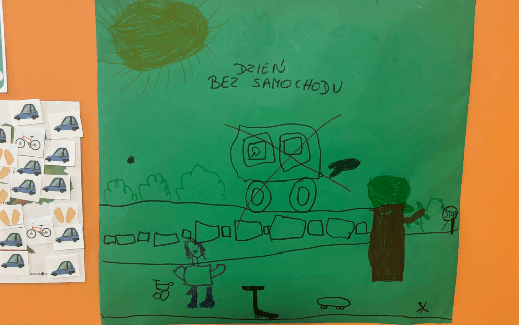 To dobra okazja, by choć na jeden dzień „odpocząć” od samochodu i zobaczyć, jak inaczej można poruszać się po mieście. W Pod Tęczą tego dnia każda grupa skrupulatnie podliczała środki komunikacji, którymi przybyli rano do przedszkola. Zrobiliśmy też wspólnie plakat propagujący alternatywne środki transportu oraz oficjalnie przemaszerowaliśmy wokół Przedszkola.